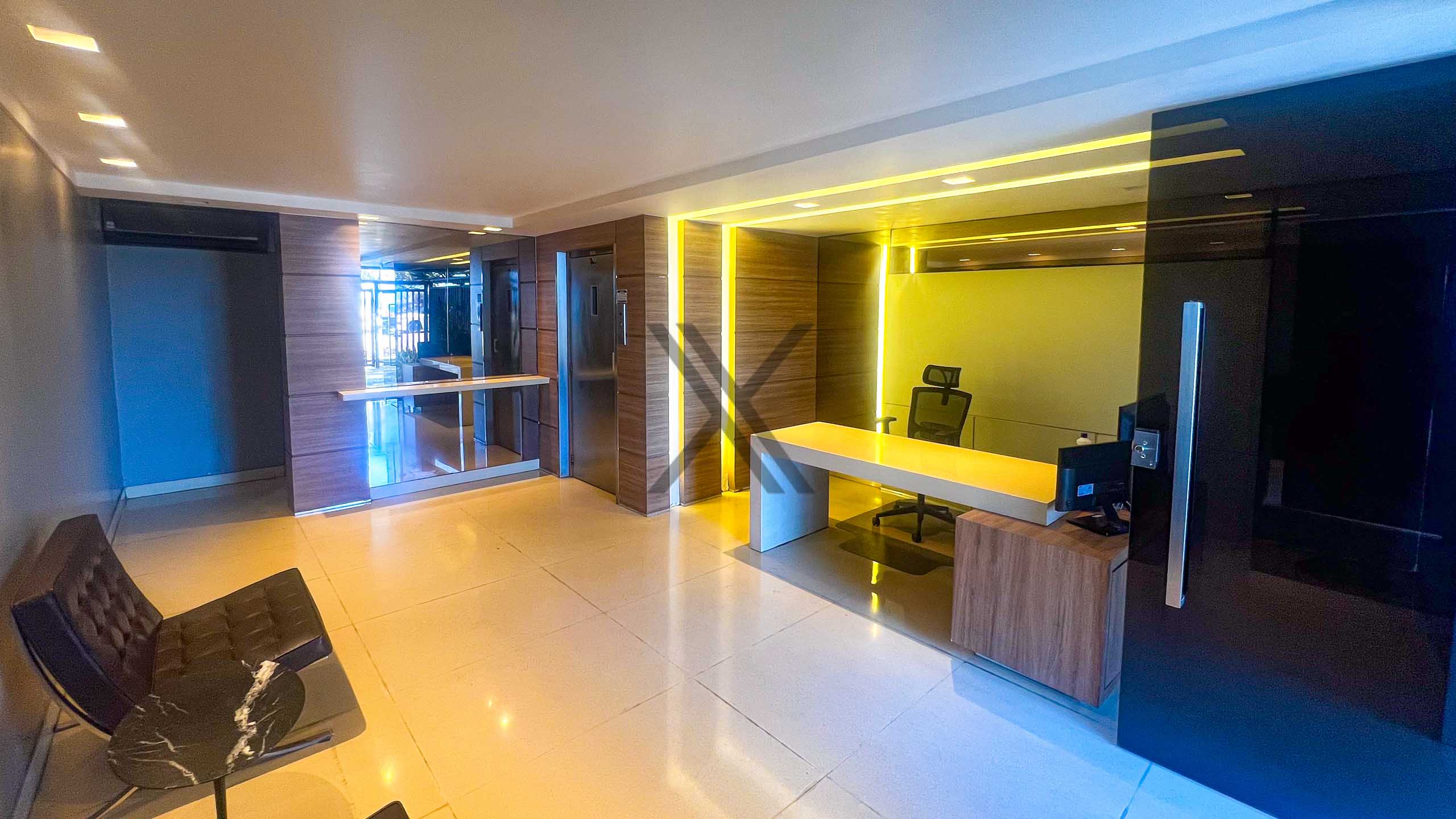 A área social apresenta um hall de entrada com acesso para a ampla sala de estar de 70 m², dividida em três ambientes, além de um espaçoso lavabo de apoio às visitas. A varanda é um dos grandes diferenciais, pois circunda toda área social e privativa do imóvel, além de possuir uma linda vista para o mar.