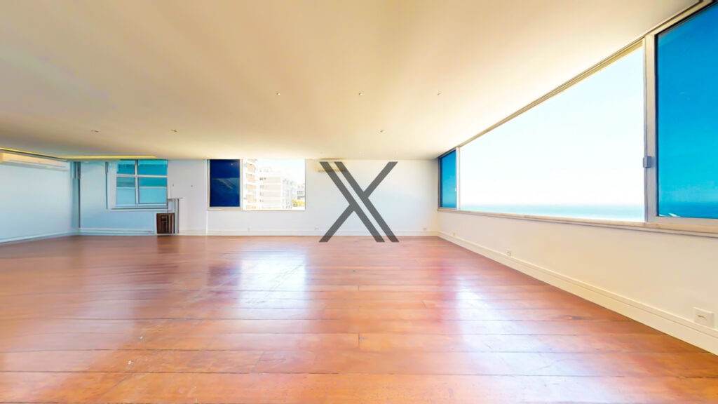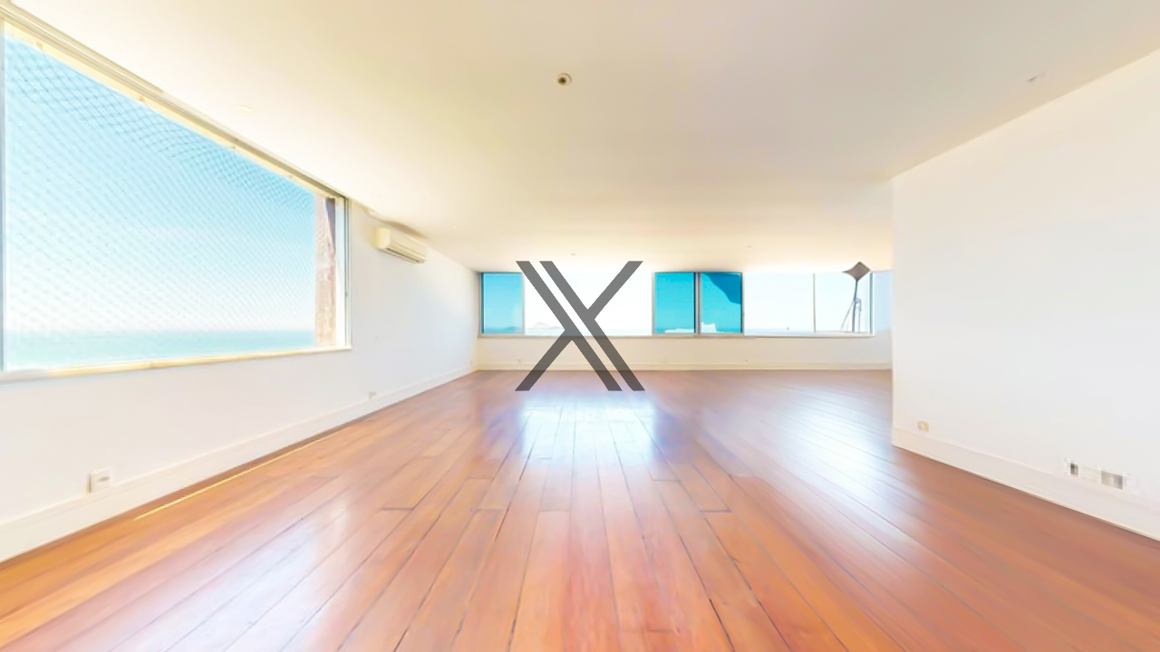 Cobertura triplex de 714 m² para reforma na Av. Delfim Moreira, com vista livre para o Arpoador e Morro Dois Irmãos.