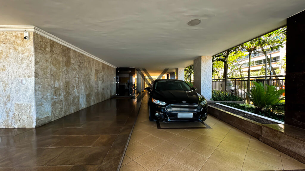 O prédio fica em centro de terreno, tem portaria 24 horas e o elevador leva aos 2 pavimentos da cobertura.