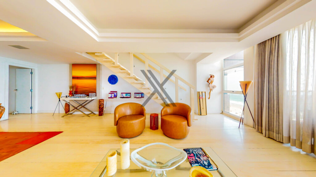 Cobertura duplex de 376 m², vista frontal mar, no Leblon. Localizado em um prédio com apenas 1 apartamento por andar, o imóvel é rico em detalhes e oferece inúmeras possibilidades de customização do seu interior, além de receber o sol da manhã. Situado em um ponto nobre e estratégico da orla, fica perto do Metrô e da rua Dias Ferreira.